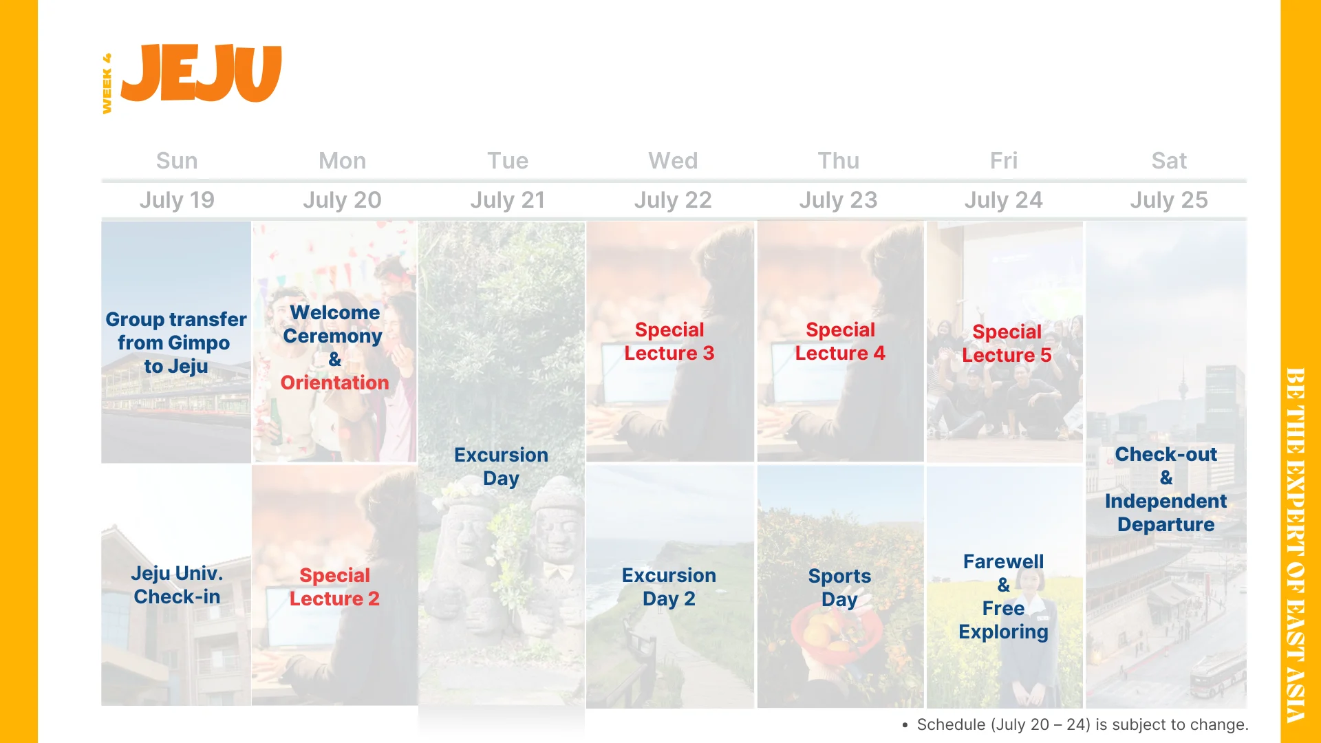 All lectures and activities provided by Jeju National University are fully included in the program fee, with no additional costs required.